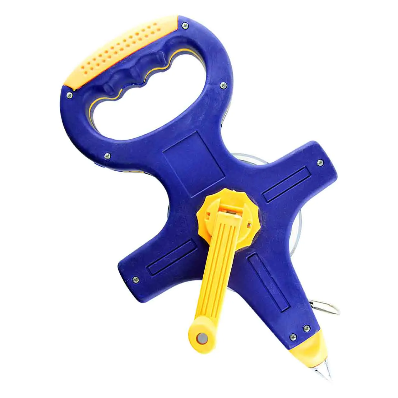 Заостренный наконечник надежно фиксирует инструмент в почве, обеспечивая фиксацию точки отсчёта измерений и ускоряет дальнейшее сматывание полотна.