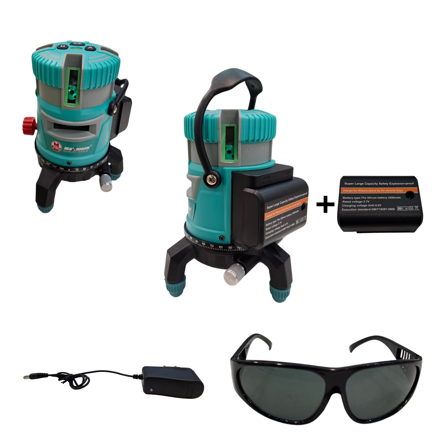 В комплекте поставляется: уровень, кейс, очки, литий-ионная батарея АА 3 шт., зарядное устройство.