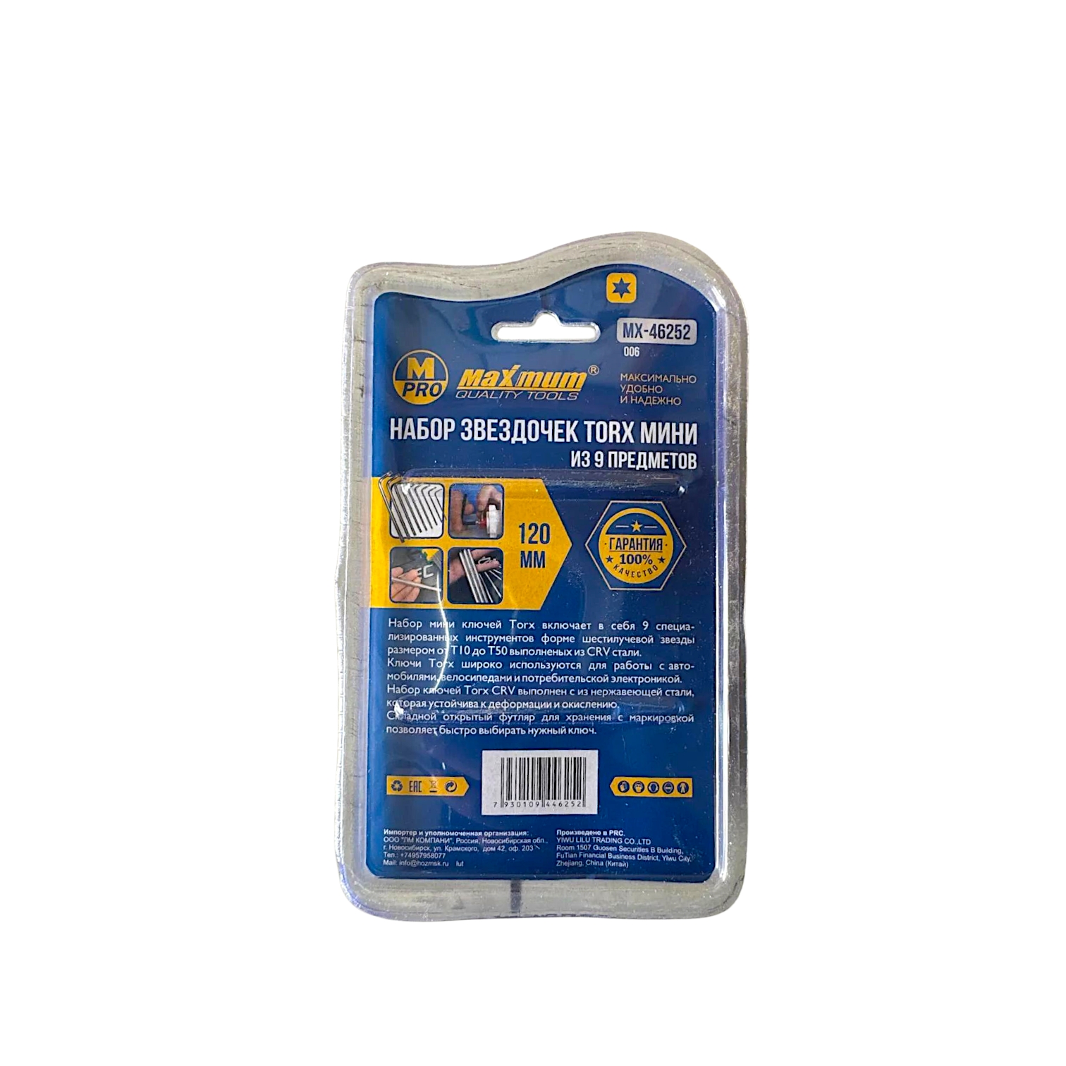 Компактный набор torx ключей 120 мм от "Maximum" (Максимум) MX 46252 — это 9 Г-образных двусторонних ключей звездочка уменьшенной длины. Благодаря размеру 120 мм инструмент незаменим при работе в стеснённых условиях: в моторном отсеке, внутри электронных устройств, при ремонте велосипедов, банкоматов, жёстких дисков и топливной аппаратуры.